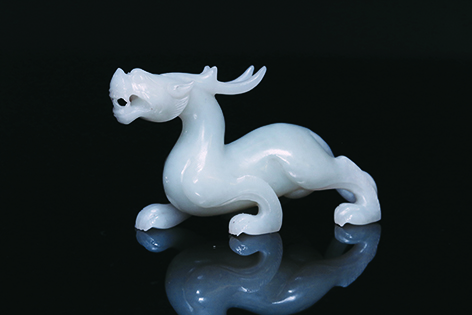 和田白玉质地细腻、光泽柔和,具有温润的油脂感,是战汉时期最受推崇的玉料。“渭陵六器”中的玉仙人奔马、玉熊、玉鹰、大玉辟邪、小玉辟邪均采用和田白玉雕琢,其色泽洁白或微泛青,与汉代崇尚“玉德”的审美相契合。