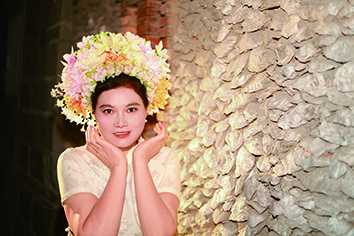 母亲一眼相中了那件素白旗袍。绸缎面料衬出身姿温婉,领口几枝缠枝莲绣得雅致玲珑。她偏爱柔和的暖色调,选的花色偏浅。阿嬷灵巧地将浅黄、粉橘的花朵簪满她发间,鬓角点缀细碎枝蔓。微风拂过,满冠繁花轻轻摇曳,映得她眼中光华流转——那像是被岁月轻覆的星辰,此刻正温柔苏醒。